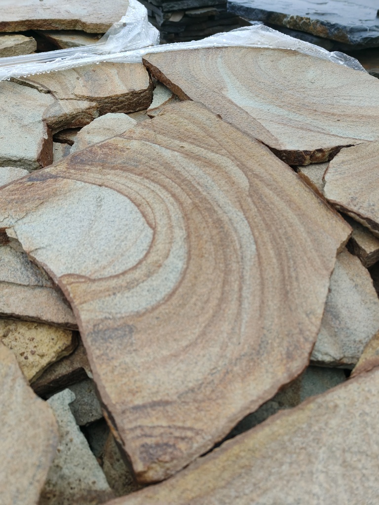 Песчаник жёлтый с разводами для мощения дорожек 40-45 мм